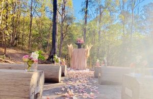 The following images show how the Bush Chapel wedding site looks with simple styling by With Love – Brisbane Wedding Decorators.